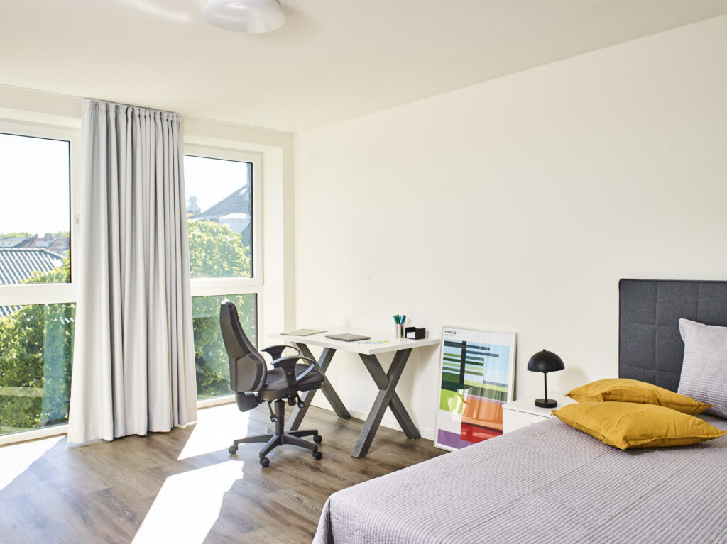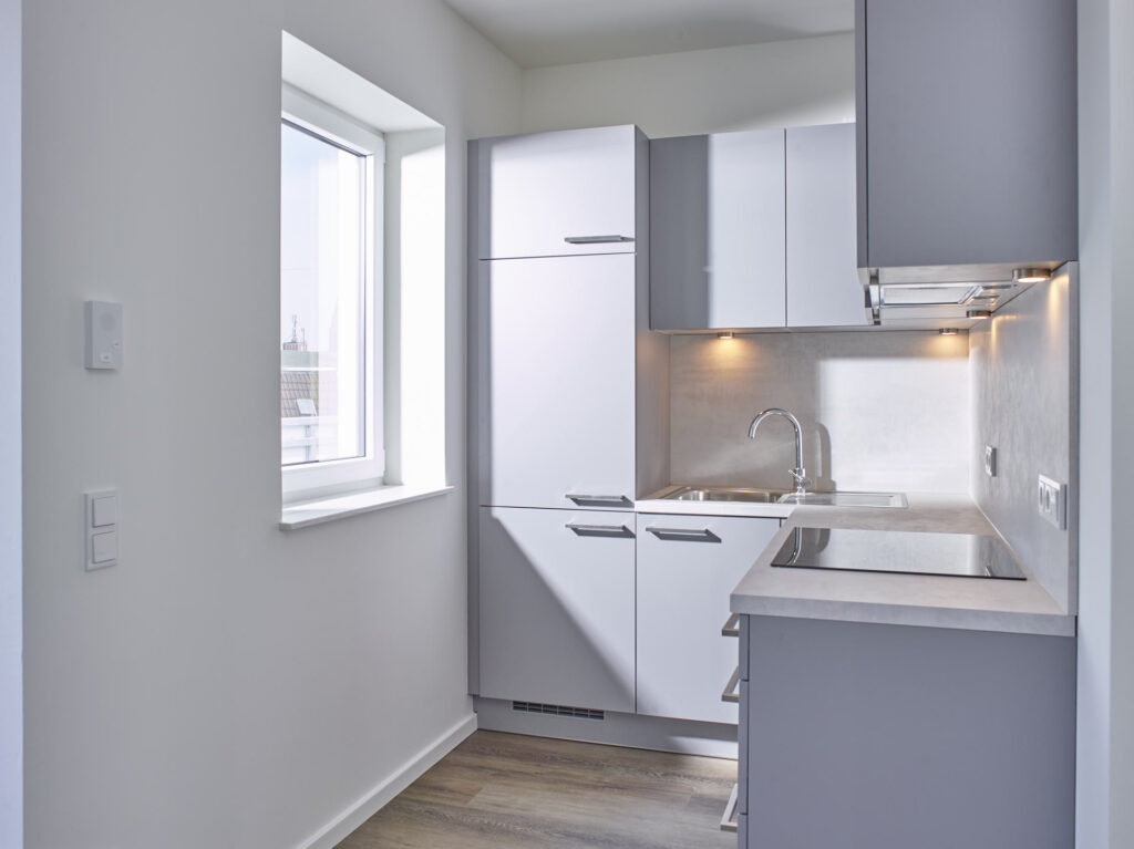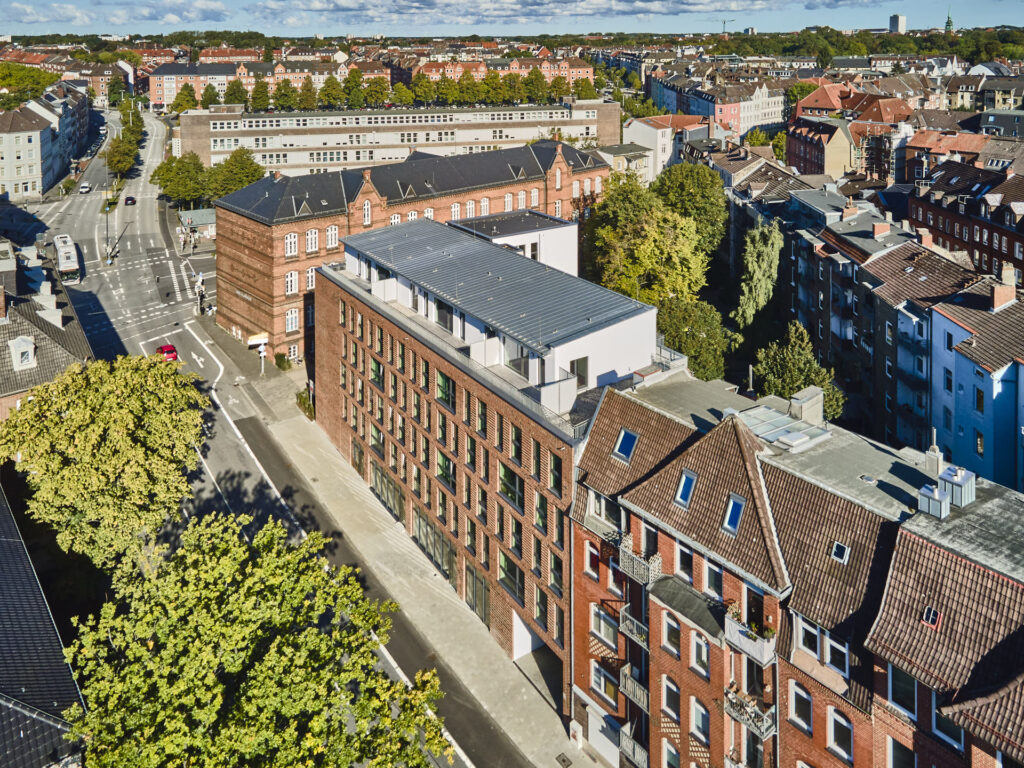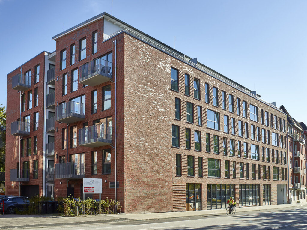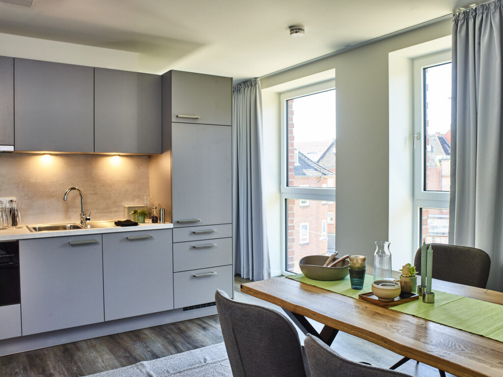 Modernes Wohnen für Studierende, Azubis, junge Berufstätige, Paare oder Singles in Kiel. Dieses Projekt zeichnet sich durch seine klare Formensprache und eine konsequente, barrierefreie Gestaltung aus. In dieser Fotostrecke haben wir die architektonische Qualität von „The Mingle“ festgehalten – mit besonderem Blick auf die Lichtführung in den Apartments und die architektonische Öffnung hin zum Gemeinschaftsbereich. Unsere Bilder betonen die Materialität des Neubaus und die nahtlose Integration in das urbane Umfeld, die dieses Gebäude zu einem modernen Ankerpunkt in Kiel macht.